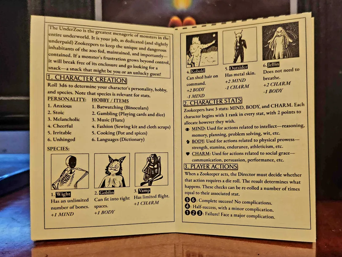 A one-page TTRPG zine for 2-4 Zookeepers and 1 Director.